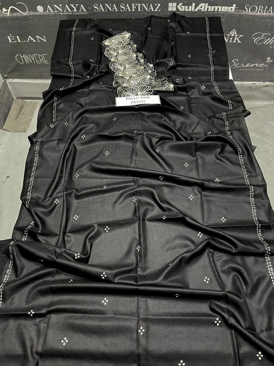 3 Pcs Women's Unstitched Embroidered Suit white and black